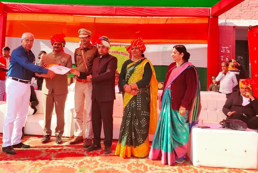 कार्यक्रम में छात्र-छात्राओं ने सांस्कृतिक प्रस्तुतियां दीं और घोष प्रदर्शन किया। इस अवसर पर उपखंड स्तर पर विशेष योगदान देने वाले 64 व्यक्तियों को सम्मानित किया गया, जिनमें समाजसेवी, खिलाड़ी और भामाशाह शामिल थे।