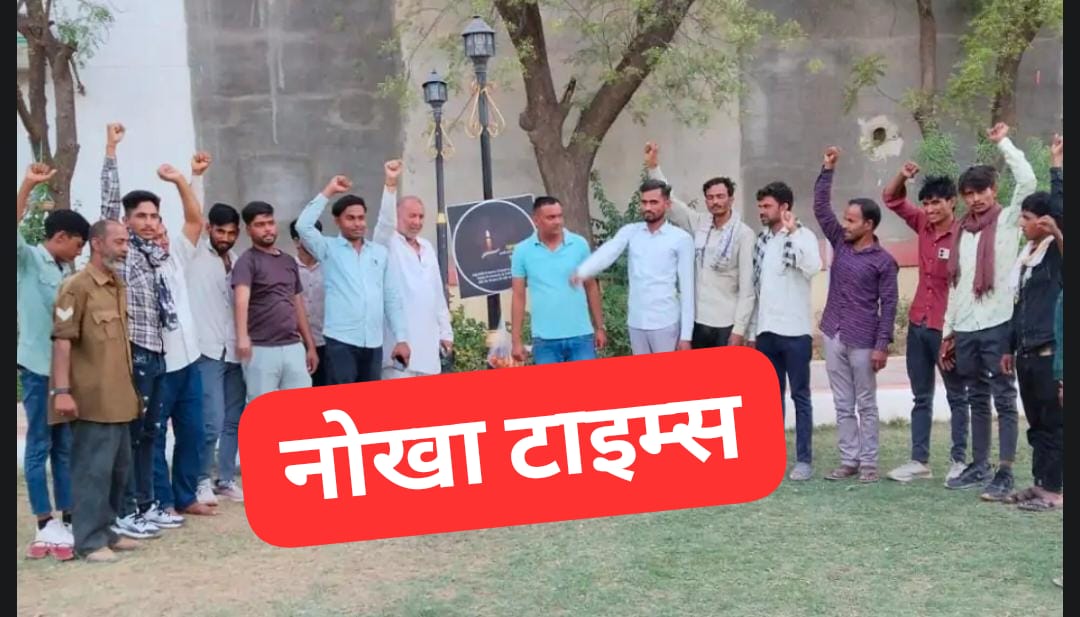 जम्मू कश्मीर के पहलगाम आतंकी हमले में शहीद पर्यटकों को नोखा के पब्लिक पार्क में लोगो ने आज शाम को दी श्रद्धांजलिः केंद्र सरकार से आतंकवादियों के खिलाफ कार्रवाई की मांग