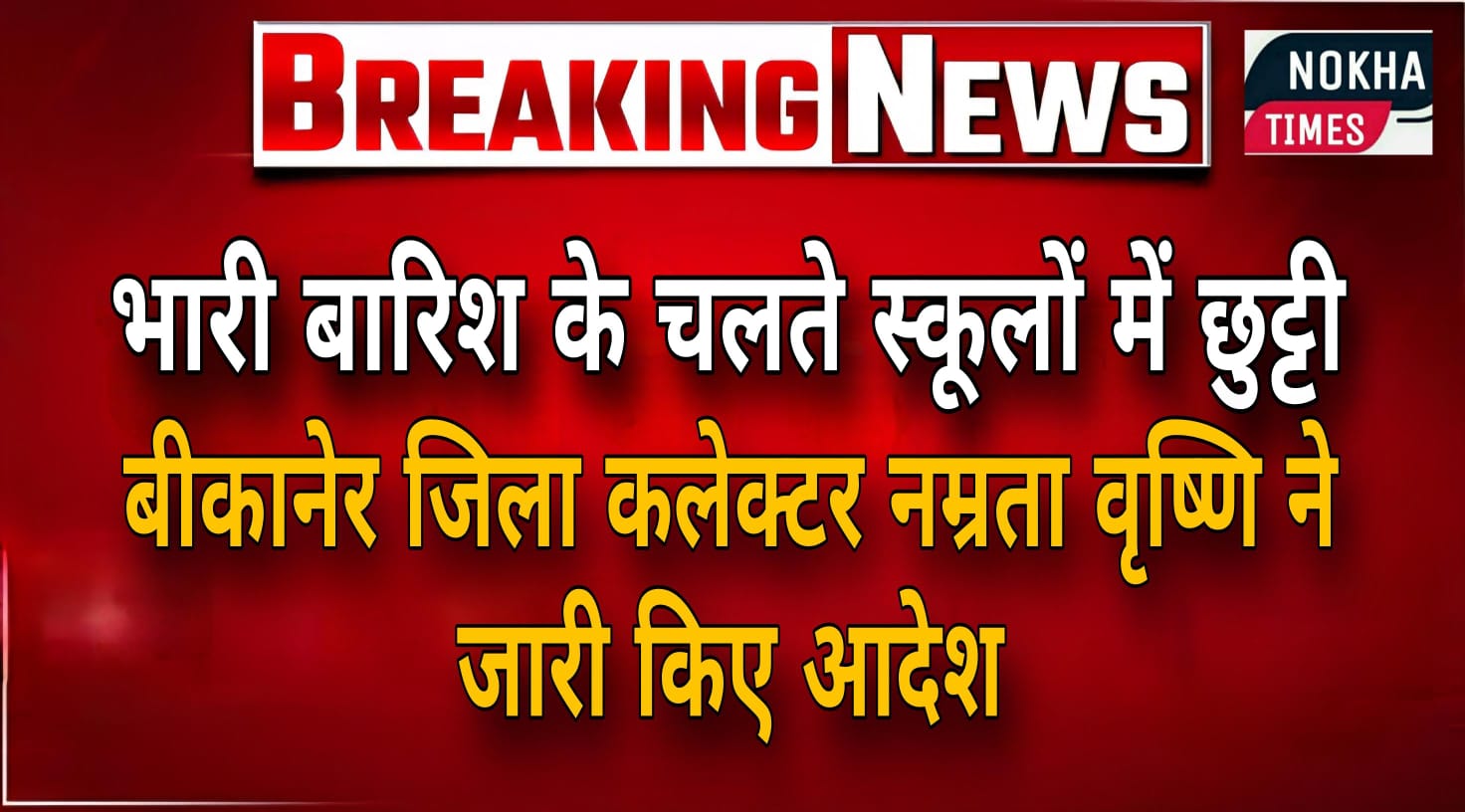 नोखा टाइम्स न्यूज़, नोखा।। भारी वर्षा की चेतावनी को देखते हुए जिला कलेक्टर ने स्कूलों के लिए अवकाश की घोषणा की है। निदेशक, माध्यमिक शिक्षा राजस्थान, बीकानेर के पत्र के अनुसार और मौसम विभाग राजस्थान जयपुर द्वारा जारी भारी वर्षा की चेतावनी के मद्देनजर यह निर्णय लिया गया है।